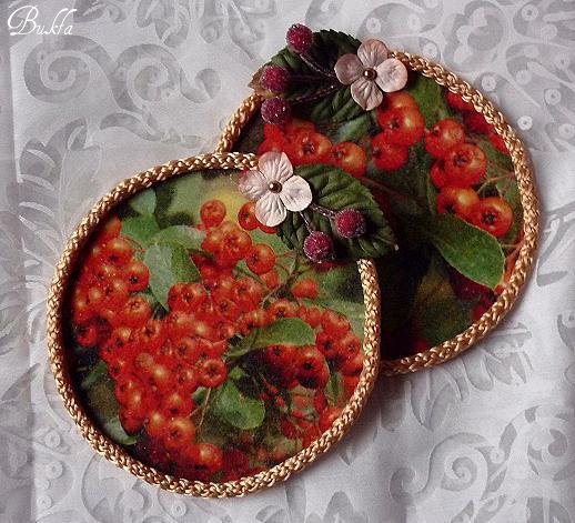 А тут посмотрела на нее и сразу решила, что сделаю подставочки для стаканов, чашек или даже рюмочек))). Да еще большая гроздь рябины  в доме имеется). Вот и сделала!